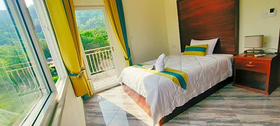 The family room features air conditioning, a tea and coffee maker, a balcony with garden views as well as a private bathroom boasting a walk-in shower. The unit has 2 beds.